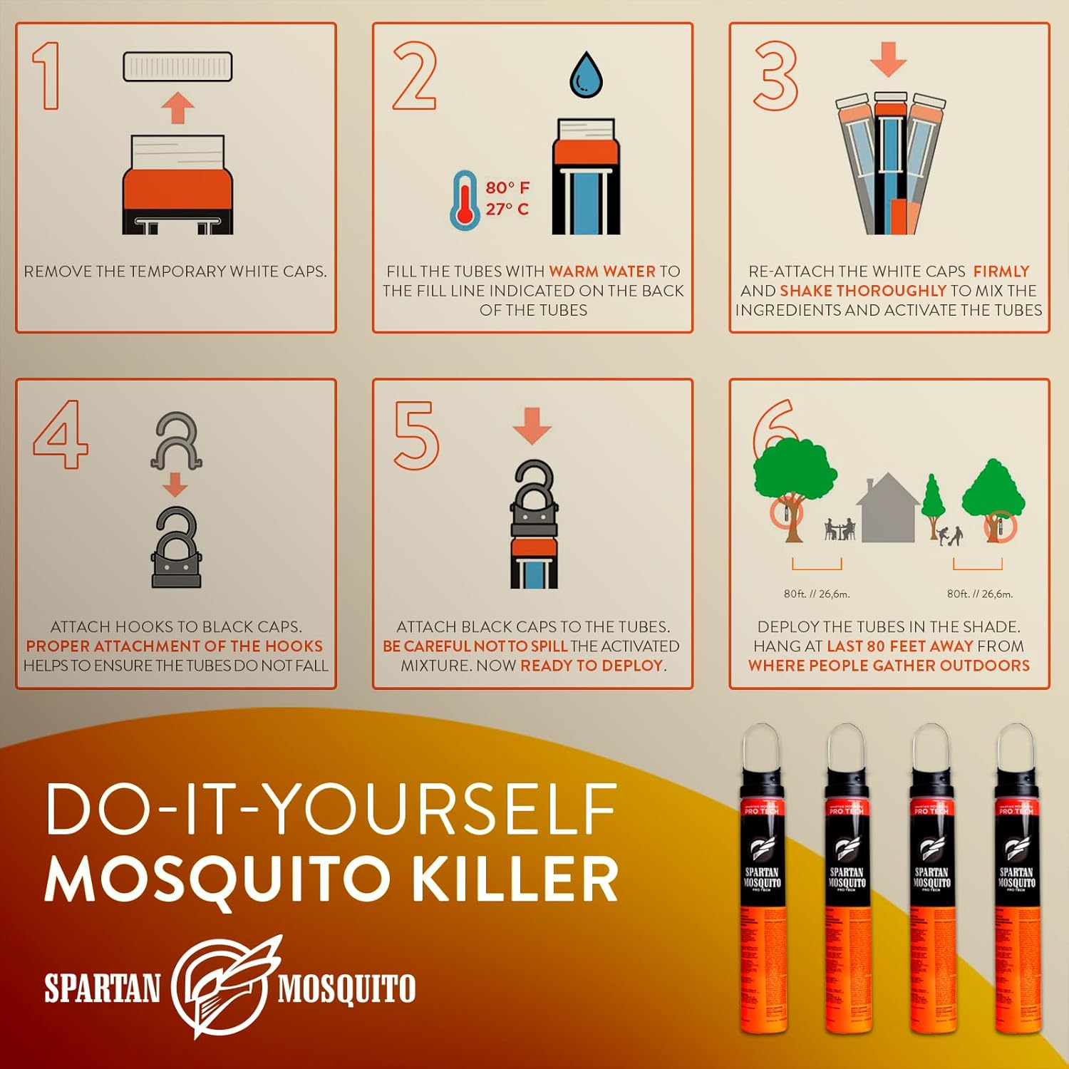 Spartan Mosquito Pro Tech – Mosquito Bait Trap and Killer, 4 Tubes, Covers 1 Acre, 30-Day Outdoor Protection